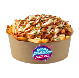 Tenders, lardons, frites, cheddar, sauce biggy, sauce fromagère.
